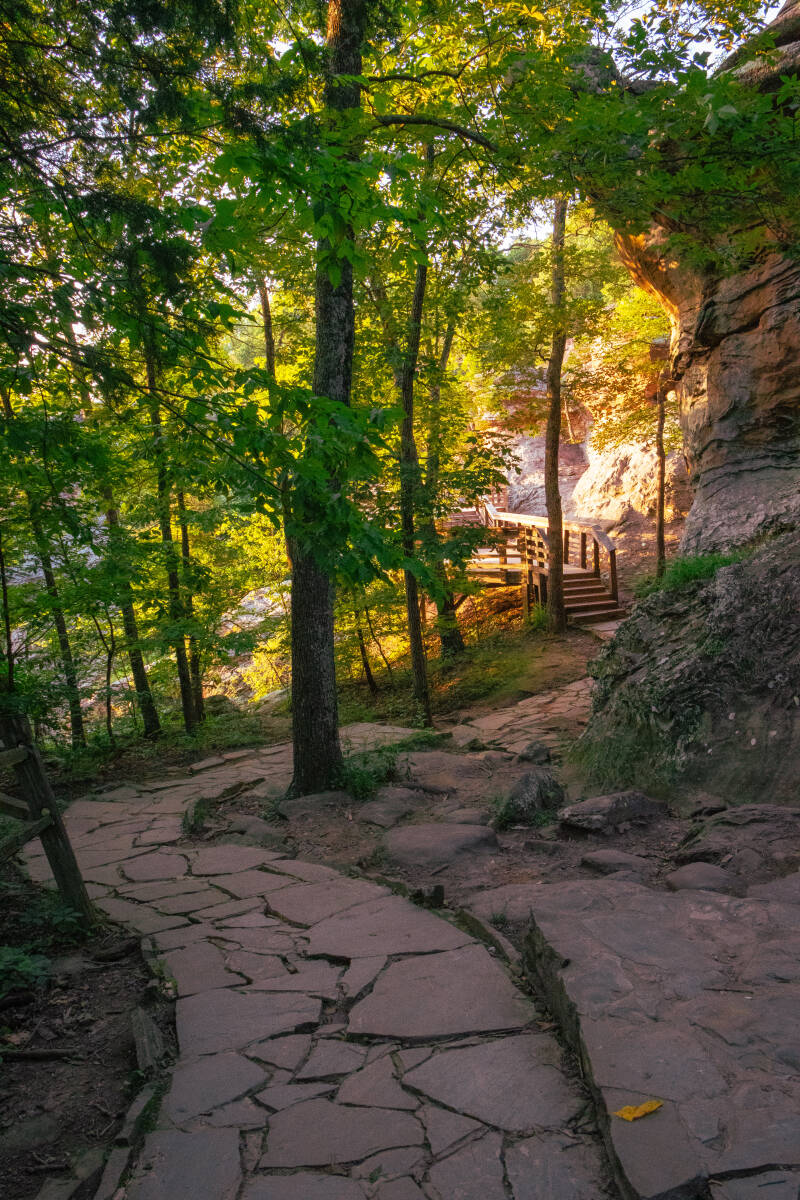 I had planned to visit the rock formations during golden hour and had already picked out a spot to watch the sun go down. In the meantime, Patrick and I passed the time playing cards, identifying various spiders, and exploring the nearby Pounds Hollow Recreation Area. Pounds Hollow is a lovely area with a lake and a sandy shoreline—perfect for beach-style activities. Patrick got in the water, but didn’t have much fun swimming alone. If you have more than one kid, it would probably be a great time.